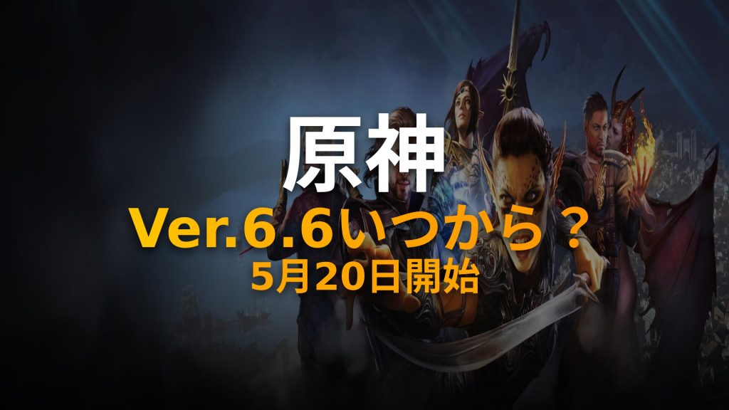 【結論:原神 Ver.6.6(Luna VII)は2026年5月20日(水)開始予定】 原神の次期バージョン「Ver.6.6(Luna VII)」は、2026年5月20日(水)に開始予定です。現在進行中のVer.6.5(Luna VI)は5月19日(火)終了となります。 前夜プログラム(生放送)は5月...